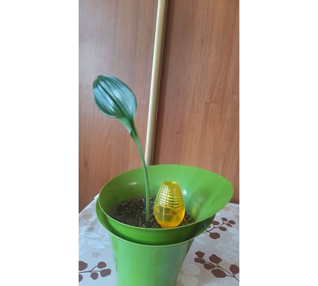- Установите автополив в почву горшка так, чтобы почва закрывала конус полностью