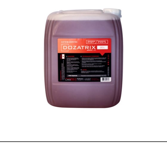 Dozatrix: Средство для бесконтактной мойки автомобилей и двигателей, разработанное специально для использования в дозатронах. Лучшее средство для дозирующих систем. Обладает мощным очистительным эффектом. Не повреждает лакокрасочные покрытия. Не содержит фосфатов. Не имеет запаха. Не меняет своих свойств при размораживании. Концентрация: пенокомплект: от 1:7 до 1:10; пеногенератор: от 1:80 до 1:120л.