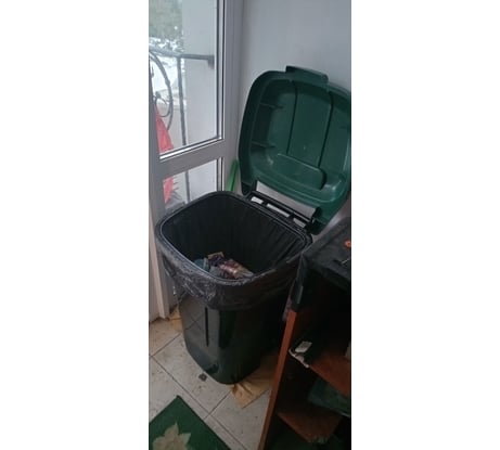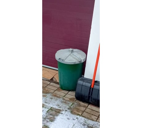Отличный бак за свои деньги. Стоит на улице, вода не затекает, крышка не отваливается. Если ветер опрокидывает, то тол ко если совсем пустой. Под крышкой есть обруч, который должен зажимать отворот мусорного мешка, но этот обруч, честно говоря, фиксируется так себе и постоянно слетает.