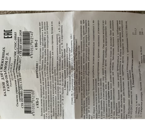 Отзывы о баллоне бытовом ОАО "НЗГА" 27 л. с ВБ-2 НЗГА НЗ 206.00.00-04