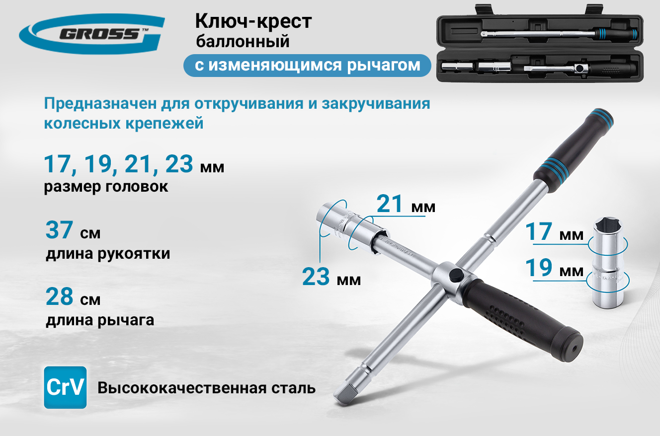 Баллонный ключ-крест с изменяющимся рычагом GROSS 14270