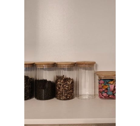 Очень удобная банка. Стекло с рифлением смотрится отлично. Использую для чая.