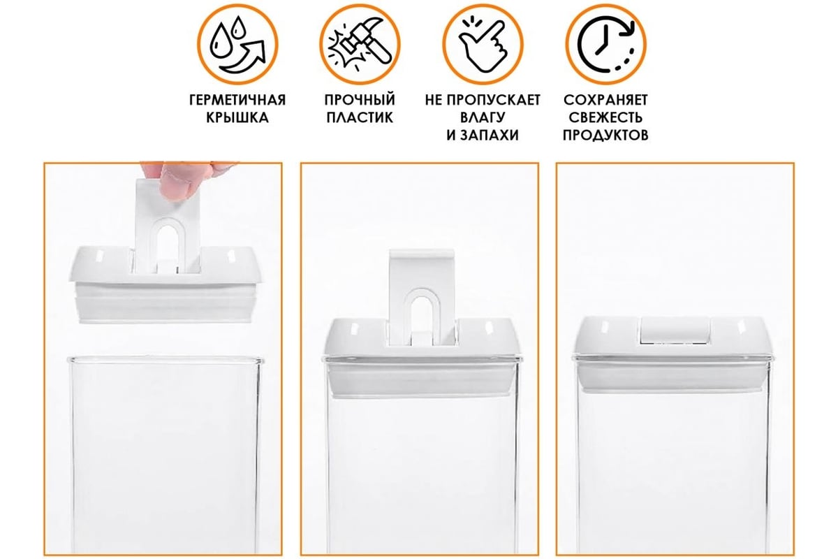 Емкость пластиковая для сыпучих продуктов 1,2 л (34-112002) имеет плотно закрывающуюся крышку, защищающая еду от влаги и посторонних запахов. В емкости удобно хранить крупы, специи, макаронные изделия, сахар, муку, бобовые. Контейнер для сыпучих продуктов удобно размещать в глубоком ящике кухонного стола, а так же он отлично смотрится на полке или столешнице.