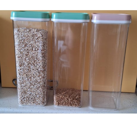 Очень удобные и практичные банки. Позволяют оптимально использовать место для хранения сыпучих продуктов. Других моделей такой удачной формы пока что в продаже не видел