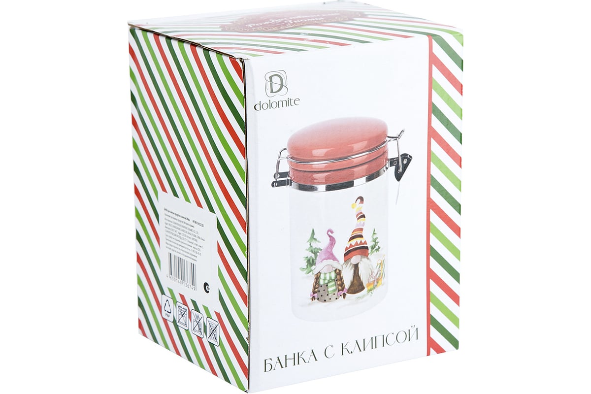Банка для сыпучих продуктов с клипсой Dolomite Рождественские гномы, 800 мл N2521183