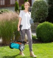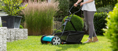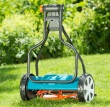 Ручка свободно перемещается относительно косилки на угол 90 градусов от самой земли, позволяя толкать косилку под любым удобным углом. Цепкие, широкие колёса, позволят уверенно перемещать косилку даже по щебёнке. При движении задним ходом колёса разобщаются с приводом барабана и вращаются независимо друг от друга, что придаёт косилке отличную манёвренность, разворачиваться можно буквально на месте.
