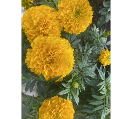 Бархатцы серии Прауд Мэри представляют новое поколение прямостоячих бархатцев: раннее цветение, мощные, крепкие и очень компактные выровненные кустики высотой 25-30 см, с крупными густомахровыми соцветиями диаметром до 10 см. Прауд Мэри - великолепный вид