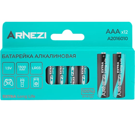Батарейка алкалиновая AAA/LR03 1300mAh Extra LongLife 1.5V (12шт) ARNEZI, арт. A2016010 - надёжный источник энергии для ваших устройств.
