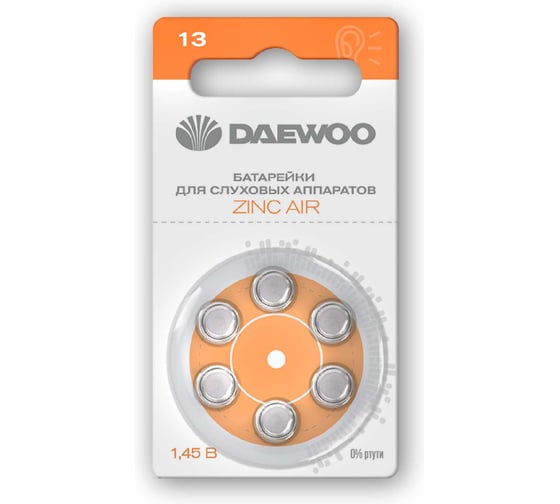 Батарейка воздушно-цинковый элемент питания для слуховых аппаратов DAEWOO ZA13 / PR48 BL-6 5060371