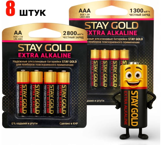Батарейки алкалиновые АА+ААА STAY GOLD набор 4шт+4шт SG-AA+ААА-8