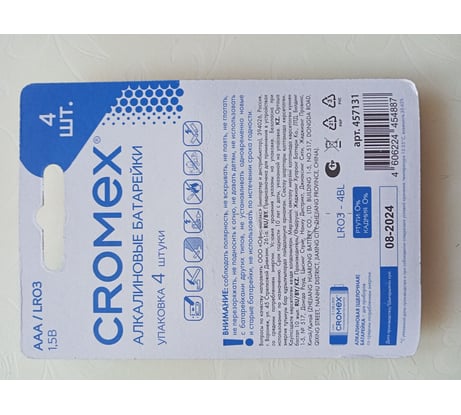 Щелочные (алкалиновые) батарейки CROMEX популярного типоразмера ААA идеально подходят для приборов со средним потреблением энергии.