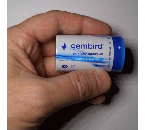 Батарейки аккуратно упакованы в блоки по 4 штуки. Заявленный на упаковке срок годности 7 лет, а крайняя дата рекомендованного использования указана на минусовом торце каждой батарейки -- "12-2031". Товар имеет сертификат СТР. Изделия выполнены качественно, без дефектов, и красиво оформлены. Диаметр батарейки 33.0 мм, длина 60.9 мм, вес 142 г. По результатам независимых сравнительных испытаний BatteryTest, элементы питания Gembird этой модели -- "D, LR20, super alkaline" -- заняли первое место по ёмкости среди щелочных батареек.