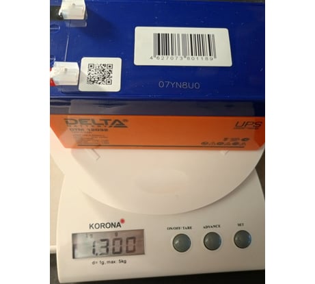 Купил на замену для ИБП Powercom WOW-500U. Напряжение на аккумуляторе при покупке: 12.89В. Масса: 1.3кг. В спецификации указано 1.35кг +-3%, т.е. небольшой недовес 9.5г, должно быть 1.3095 по нижнему пределу. Дата производства: май 2025г. Может кому это важно, но на батарее указаны иные напряжения заряда, чем на фото в спецификации: Standby use: 13.62-13.8V Cycle use: 14.7-14.82V Проверил после 8 часовой зарядки на 100Вт лампе - ИБП проработал 7мин30сек.