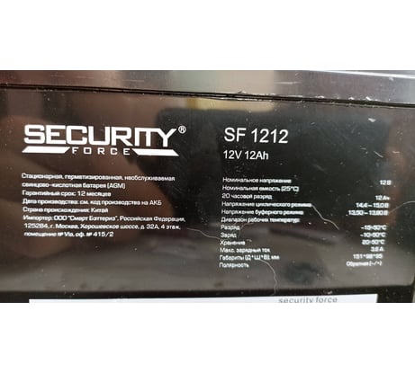 Отзывы о батарее аккумуляторной Security Force SF 1212
