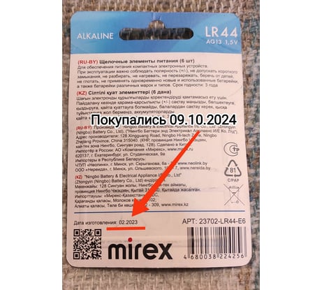 Отзывы о батарее Mirex, щелочной AG13 / LR44 1,5V 6 шт ecopack 23702-LR44-E6