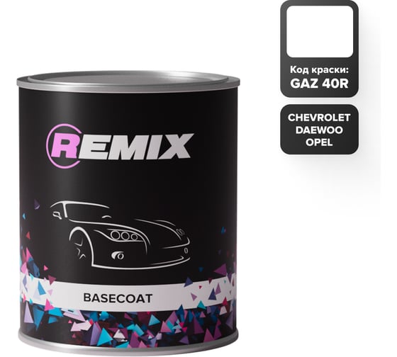 Базовая автоэмаль REMIX RR BASECOAT Chevrolet/Daewoo/Opel GAZ/40R OLYMPIC WHITE/Белый 0,9л RR0GAZ