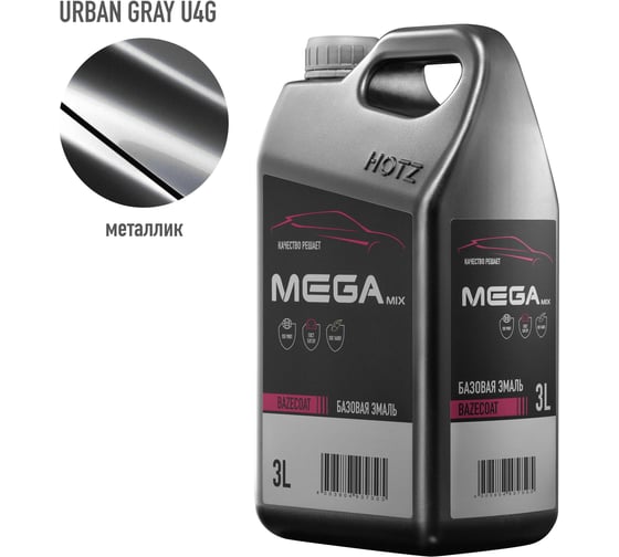 Базовая эмаль Hyundai/Kia Urban Gray U4G металлик, 3 литра Megamix Краска автомобильная, базисная под лак 4673755225408