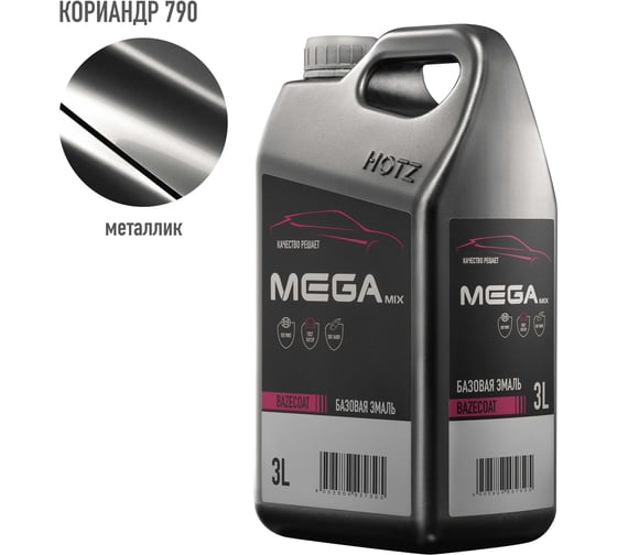 Базовая эмаль Кориандр 790 металлик, 3 литра Megamix Краска автомобильная, базисная под лак 4673755225255