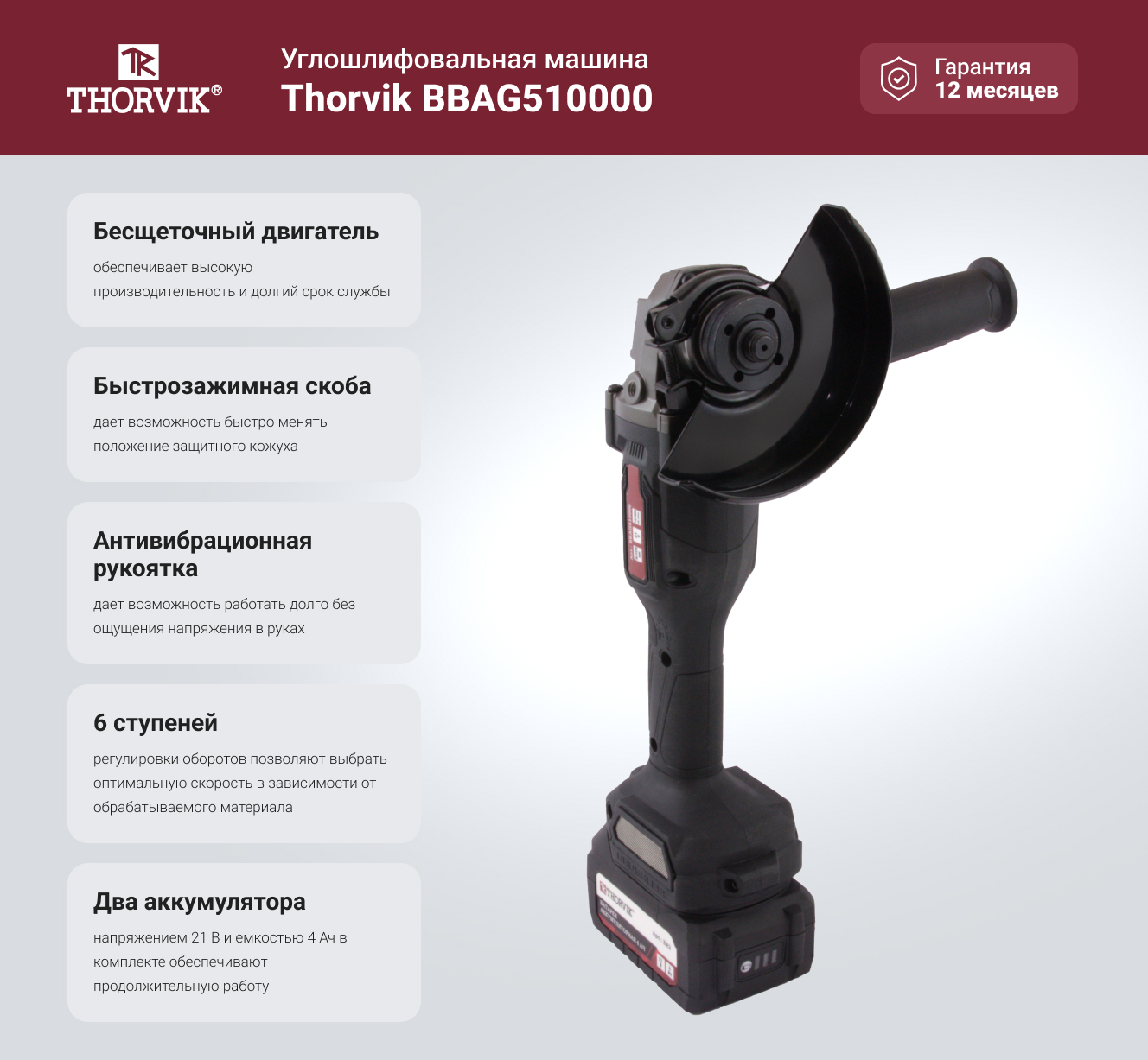 Вопросы и ответы о машине углошлифовальной THORVIK BBAG510000