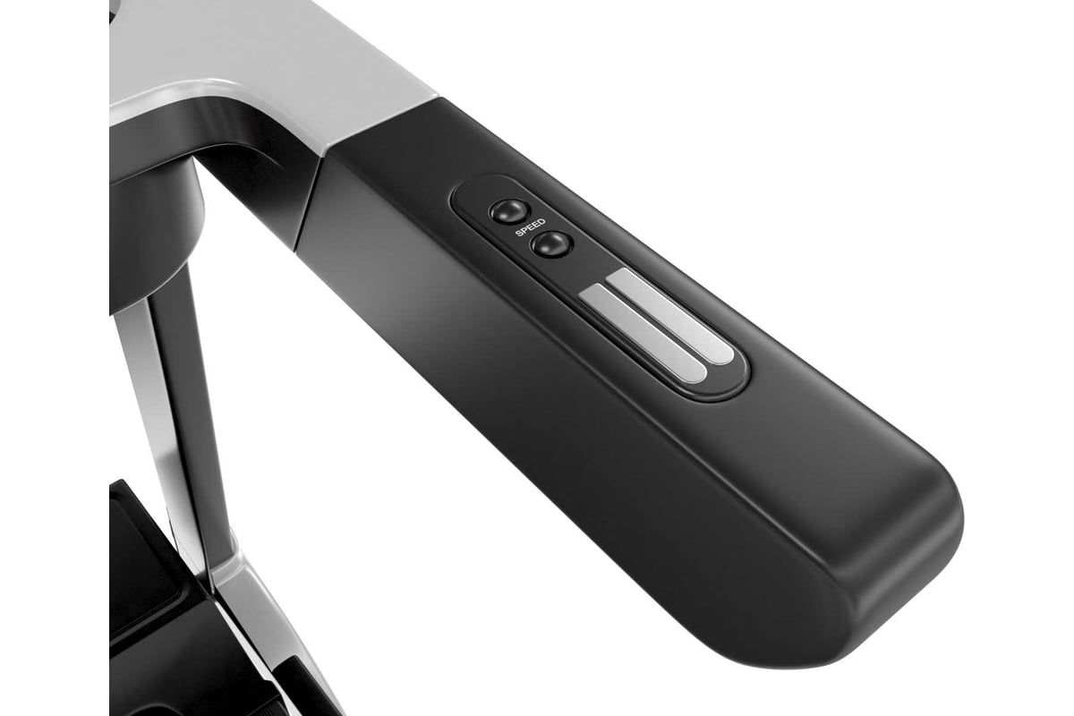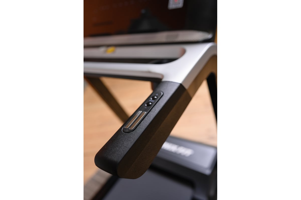 Устройство обладает интуитивно понятной консолью на русском языке. Панель управления отображает такие параметры как скорость, пройденная дистанция, потраченные калории, время тренировки, пульс и угол наклона. На поручнях расположены датчики пульса, которые помогут отследить сердечный ритм во время тренировки и кнопки изменения скорости и угла наклона.