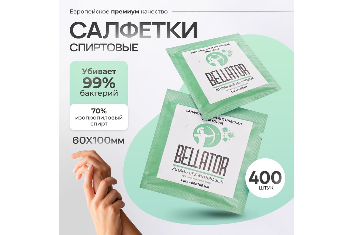 Беллатор салфетка с изопропиловым спиртом БЕЛЛАТОР 60x100 мм (коробка 400 шт) 7930108421687