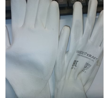Отзывы о белых лёгких бесшовных защитных перчатках эргономичной формы из нейлона WIEDERKRAFT WDK-PU01W / L