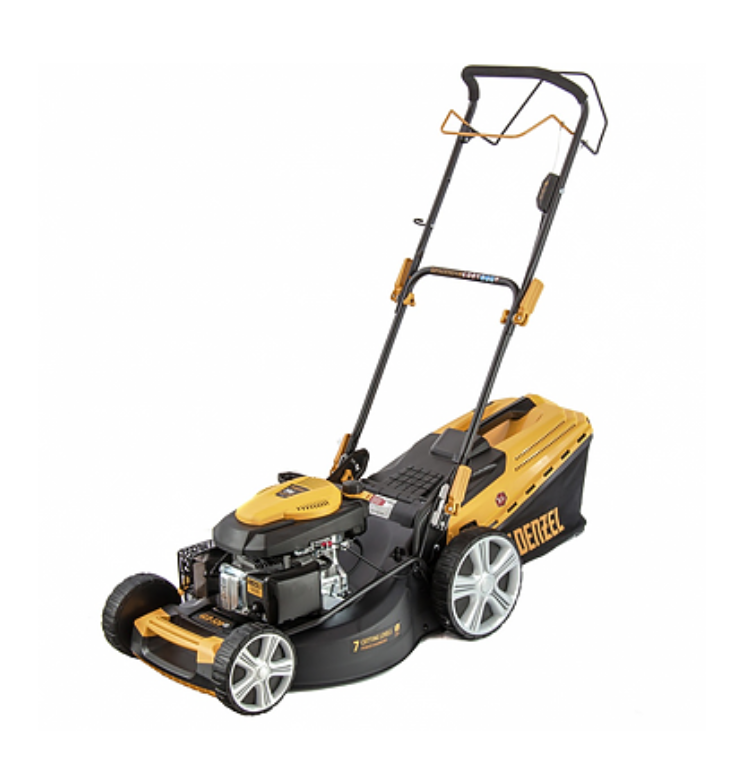- Усиленная стальная дека Имеет специальную форму для лучшего втягивания травы и красиво выкрашена матовой краской