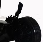 Регулирование высоты скоса Регулировка высоты скашивания травы осуществляется посредством рычажков, расположенных на каждом колесе. Есть шесть позиций - от 30 до 75 мм. |