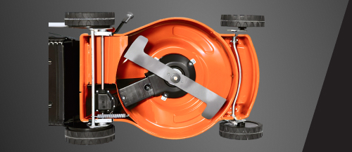 - Центральная регулировка высоты скашивания Высота скашивания настраивается с помощью одного рычага – устанавливать ее отдельно на каждом колесе не нужно