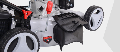 мощный бензиновый двигатель 5 л. с. - газонокосилка справится с густой травой, в том числе с газоном, который длительное время не скашивался;