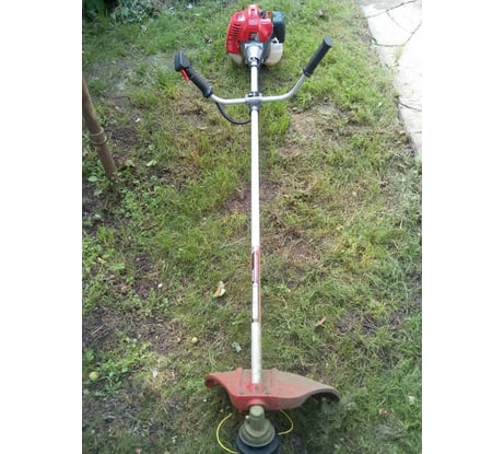 Катушка сразу сломалась. Длинная штанга. Тяжёлая. Штанга сильно длинная не удобно косить