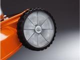 Комфортное передвижение Колеса косилки оснащены литыми легкосплавными дисками с двумя закрытыми подшипниками и резиновыми шинами с увеличенной высотой протектора. |