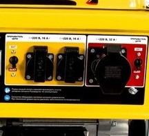 - Имеется 3 розетки, две из которых на 16А с евроразъемом, а одна на 32 А с силовым разъемом.