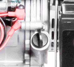 Благодаря верхнему расположению топливного бачка удобно заливать бензин; есть датчик для контроля его уровня