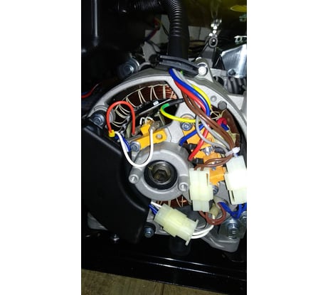 Заводится хорошо, как электростартером, так и ручным. Заводил в мороз, минус 24 градуса, ради интереса заводил ручным - не так легко как в тепле, но завёлся. Напряжение, обороты и частоту под нагрузкой держит хорошо. Когда купил, решил протянуть все болты, винты, гайки т.к вибронагруженность всё таки высокая - так вот всё затянуто было всё хорошо. Вся сборка выполнена аккуратно, претензий почти нет. Пучок ни чем не защищённых низковольтных проводов, выходящих из панели, контактирует с острым краем металлической отливки на корпусе двигателя, что не есть хорошо. Нагрузку давал 27А (~6000Вт.) постоянную - всё нормально. Тарахтит громко. Вибрирует сильно. При работе декоративный пластиковый кожух панели дребезжит об корпус бензобака. Тяжелый (100кг с бензом), если надо перемещать, то нужны колёса. По деталям, похоже что полностью унифицирован с подобными китайскими аппаратами, так что проблем с запчастями быть не должно. С дизайном корпуса панели, конечно перемудрили немного) Но в целом я всем доволен.