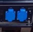 Генератор имеет электрический тип запуска и работает на бензиновом топливе. Имеются две розетки с защитными крышками, а также датчики и индикаторы на передней панели, отображающие состояние прибора.