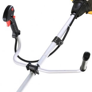 Триммер оснащен антивибрационной системой, что позволяет работать долго без ощущения напряжения в руках. Плечевой ремень и велосипедная рукоятка равномерно распределяют нагрузку на руки и спину. Катушка с полуавтоматической подачей лески позволяет увеличить ее длину легким ударом шпули о землю. Ограничительный нож, расположенный на кожухе, обрезает излишки лески, при этом работу триммера останавливать не нужно.