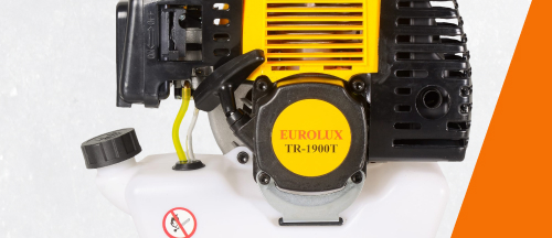 Несмотря на то, что Eurolux TR-1900T принадлежит к бюджетному классу, инструмент оснащен двухтактным двигателем с профессиональными параметрами: мощность 2,5 кВт (3,4 л.с.), скорость в 9500 об/мин. Двигатель запускается легко и не перегревается в процессе работы, благодаря воздушному охлаждению. Уровень шума в 96 дБ, не давит на слух.