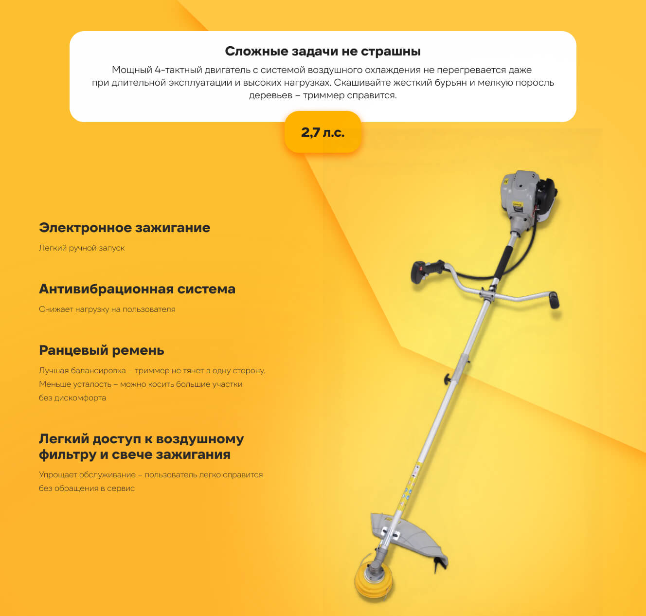 - Легкий доступ к воздушному фильтру и свече зажигания
