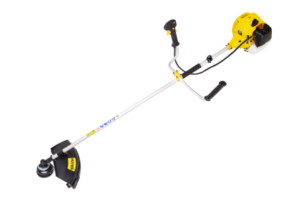 В комплектацию GGT-430T входят стандартная головка лески и трехлопастной нож, которые обеспечивают ширину скоса 460 и 255 мм соответственно. Неразборная штанга с удобной U-образной рукоятью и стандартный ремень через плечо. Двигатель этого бензинового триммера имеет антивибрационную систему и лёгкий электронный пуск, а органы управления инструментом находятся прямо на рукоятке. Всё это в совокупности повышает комфорт и облегчает работу. Очки в комплекте не идут.