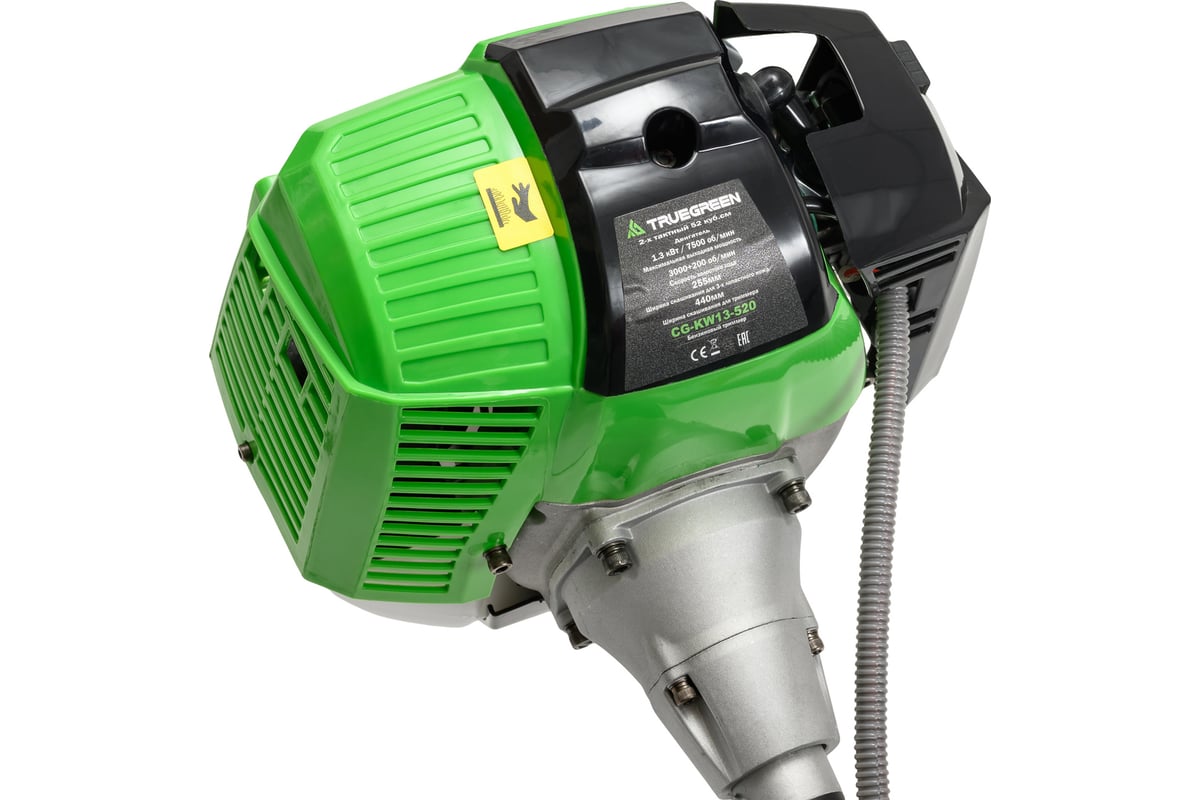 Бензиновый триммер TRUEGREEN CG-KW13-520 представляет собой надежное решение для бытового использования. Оснащенный двухтактным двигателем мощностью 1.4 кВт (1.88 л.с.), он обеспечивает эффективную работу при скашивании травы. Объем двигателя составляет 24955 см³, что способствует высокой производительности.