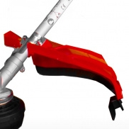 - Увеличенный пластиковый кожух надежно защищает пользователя от отходов травы и древесины, вылетающих из под режущей системы косы в процессе работы