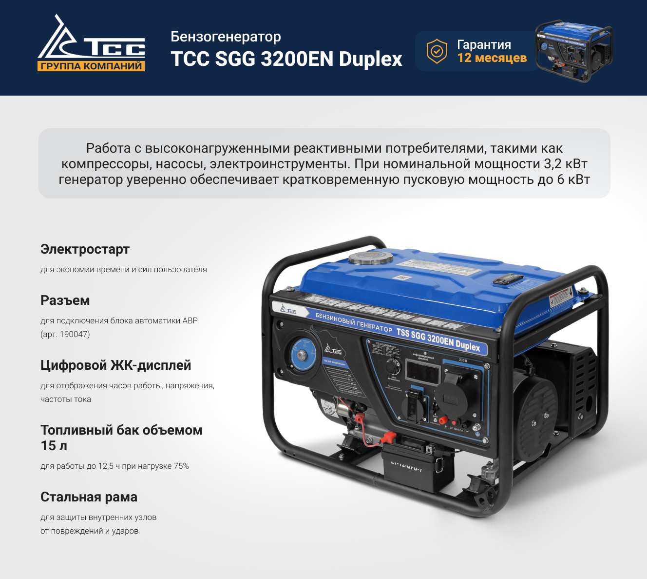 Преимущества ТСС SGG 3200EN Duplex 60019