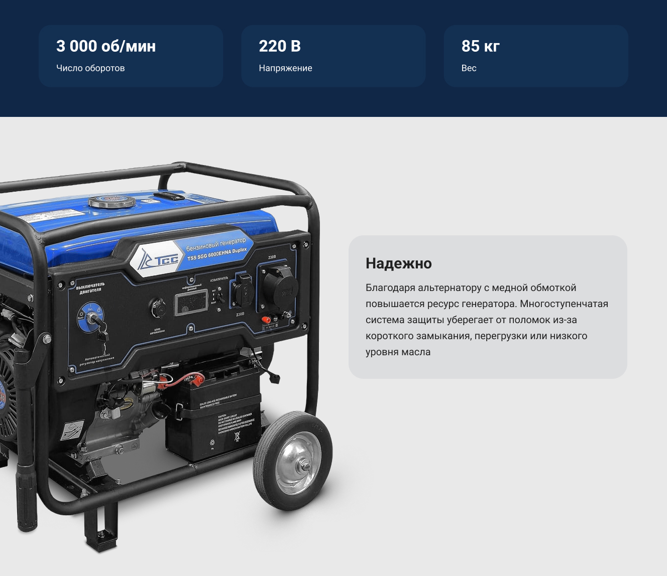 Преимущества ТСС TSS SGG 6000EHNA Duplex 160012