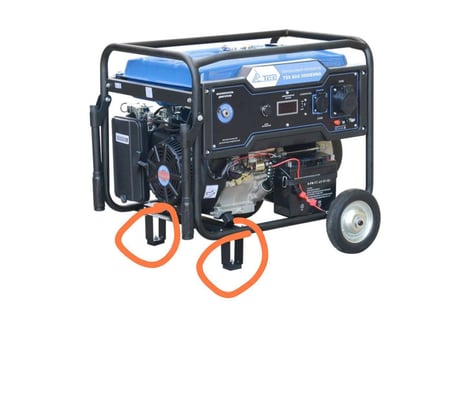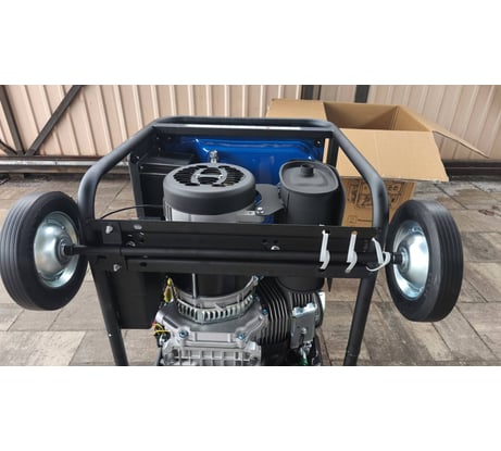 В комплекте не было передних опор, крепежа для оси колес, крепежа для ручек, шплинтов для фиксации колес. Сама колёсная ось была бракованная - без одной пластины для крепежа к раме генератора. Немного подкапывает кран подачи топлива