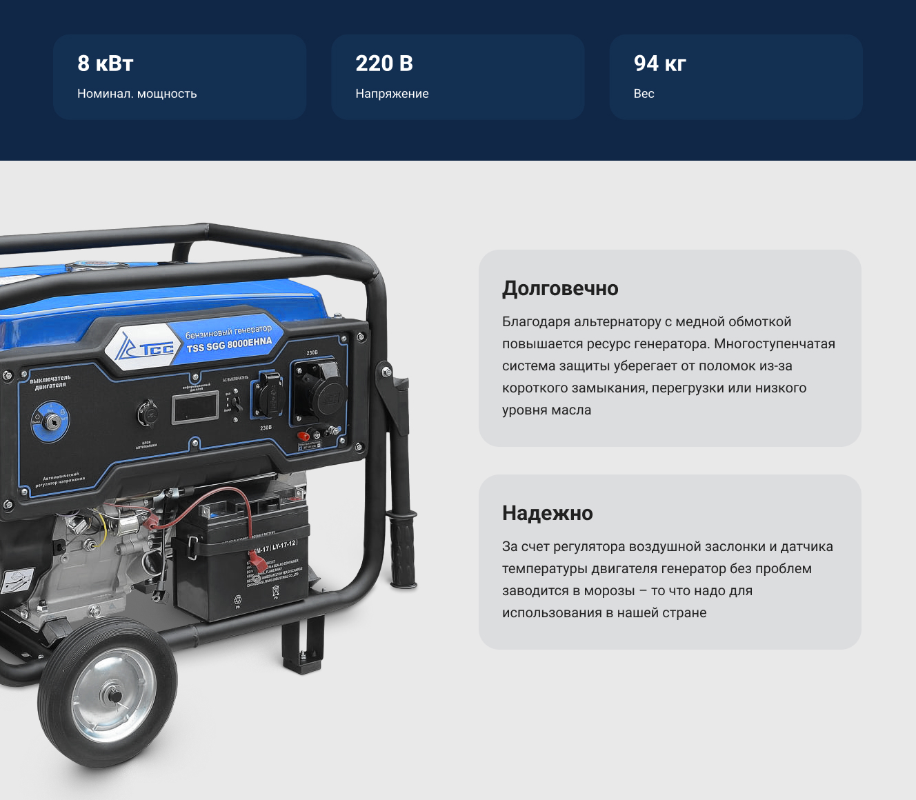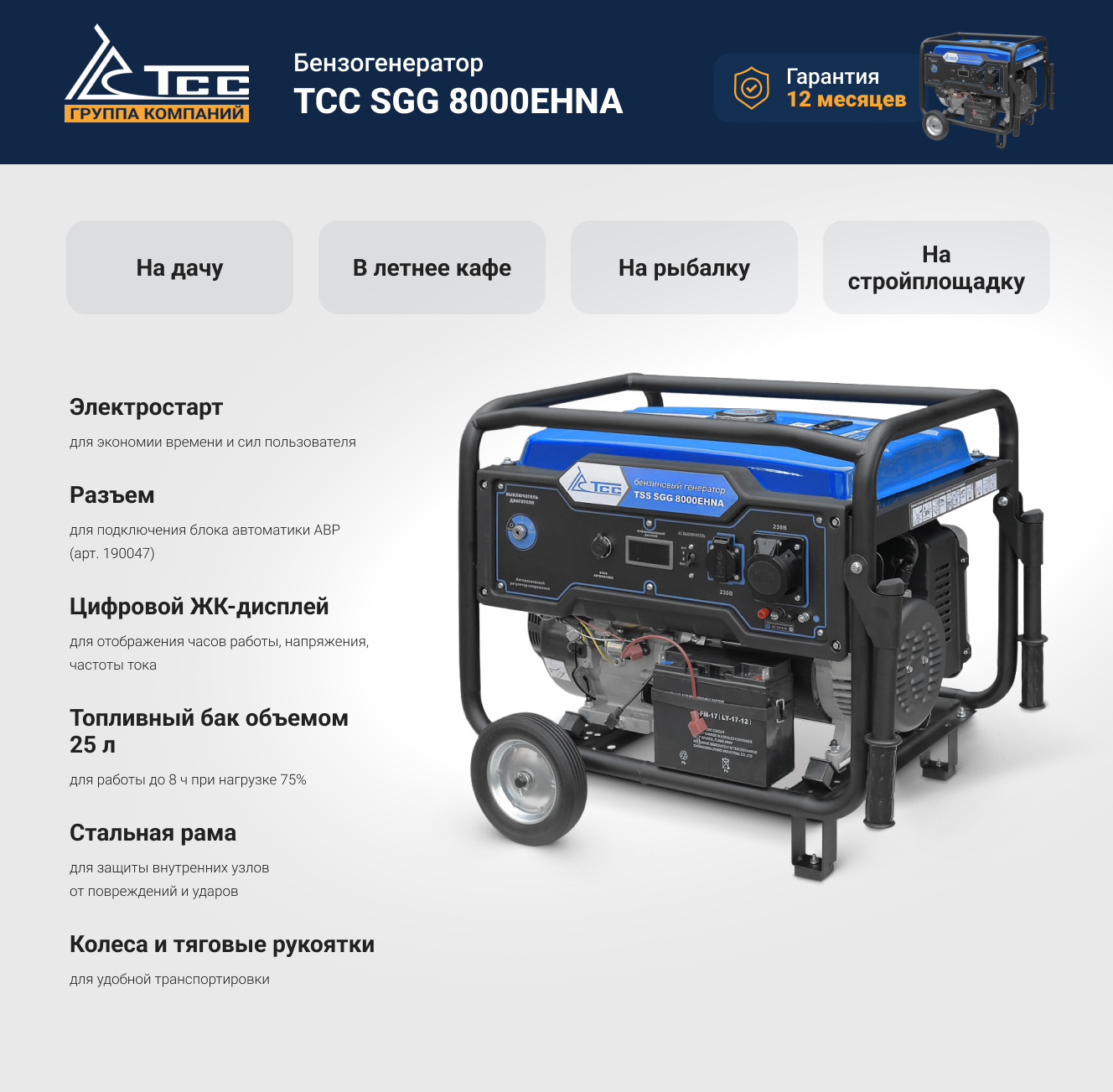 Преимущества ТСС SGG 8000EHNA 160014