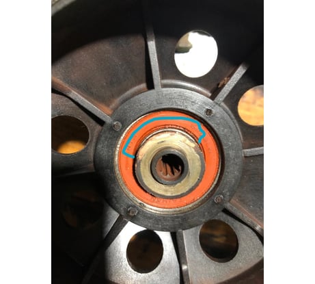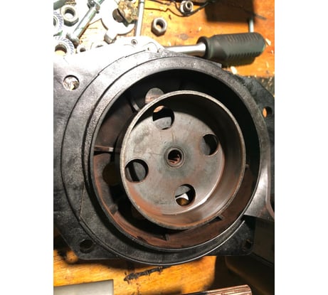 Коса отработала пять заправок топлива и сломалась. Разлетелся диск сцепления. Приварен точечной сваркой к втулке. Очевидно должен быть приварен по диаметру, но по факту провар лишь на 35% от диаметра. Конечно должно отвалиться!