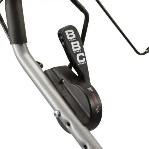 Размещенный на ручке рычаг сцепления привода ножа (BBC) позволяет быстро отключить инновационный двойной нож от привода, не глуша двигатель, чтобы без дополнительных сложностей опустошать травосборник и пересекать тропинки и дорожки.