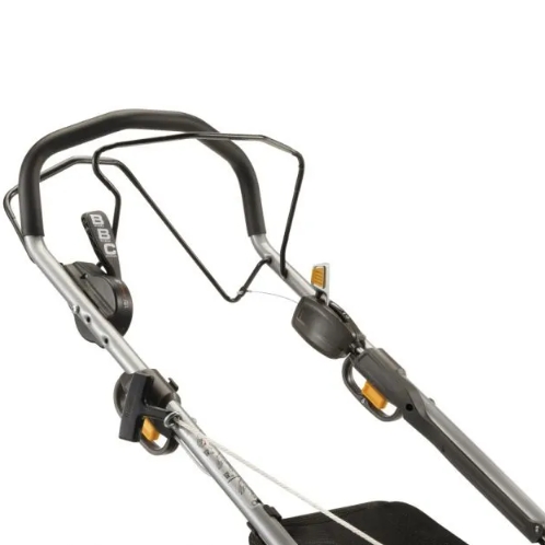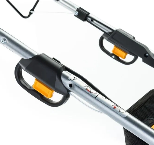 Рычаг централизованной системы регулировки высоты кошения может быть установлен в любое из 7 положений в диапазоне от 25 до 77 мм. Удобные фиксаторы на ручке позволяют с легкостью регулировать и складывать ее.