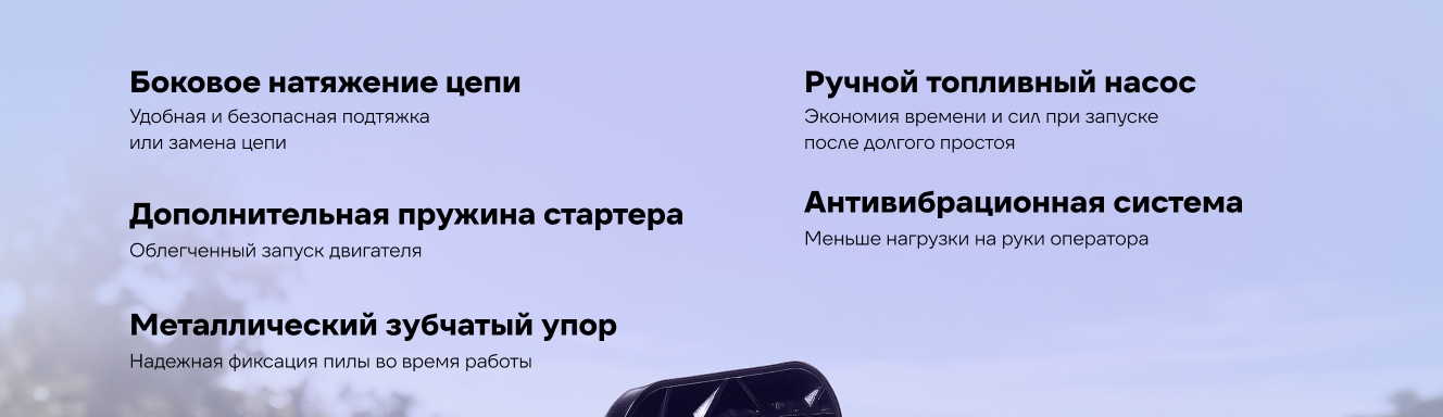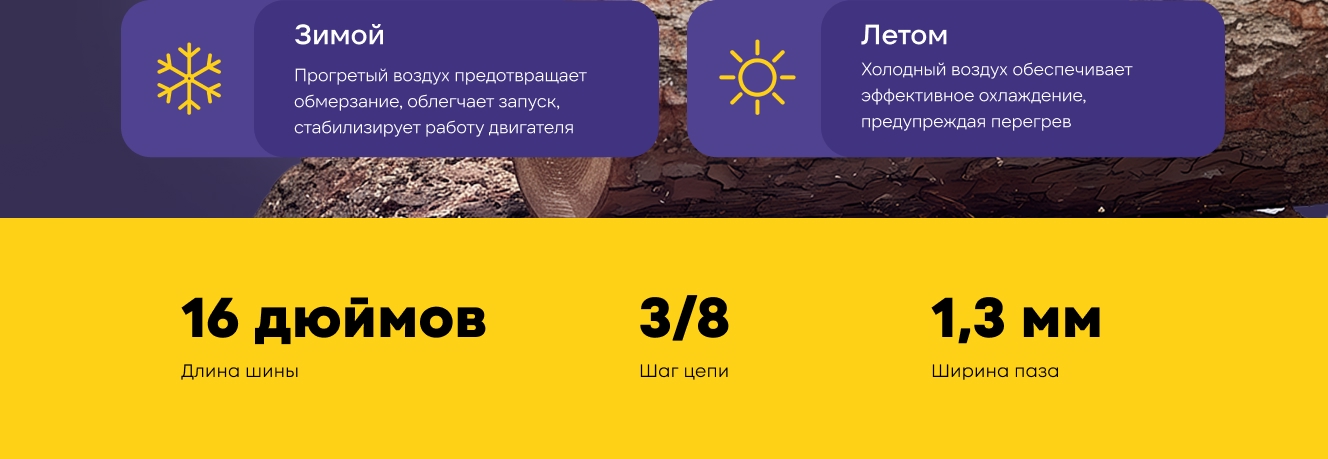 Данная модель оснащена подогревом камеры воздушного фильтра и карбюратора, за счет чего достигается стабильная работа в холодных условиях.
